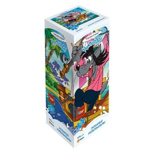 Пластиковый пазл с изображением героев мультфильма 'Ну, погоди!'. Оригинальный дизайн, уникальные детали, идеальная сцепка. В комплект входят специальные соединительные петли, они позволяют хранить собранные пазлы.