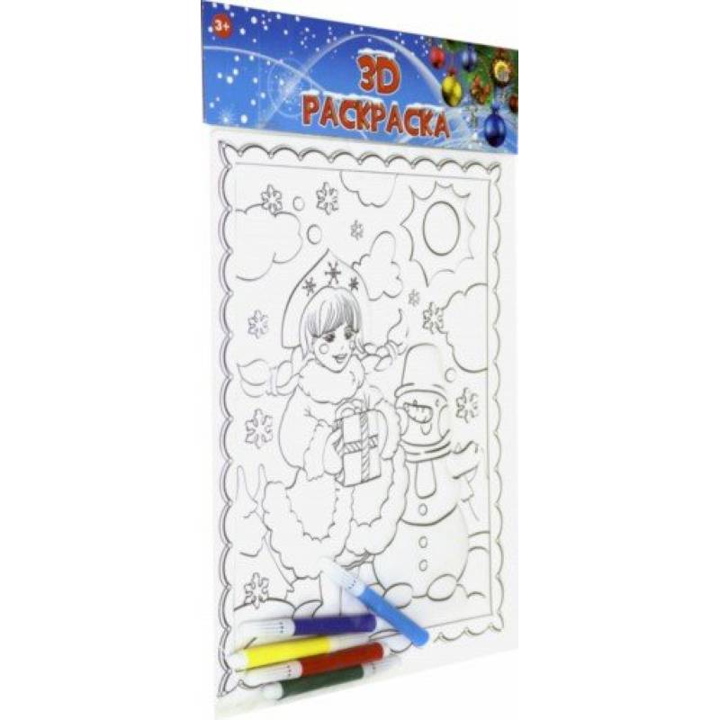 —3D раскраска. СНЕЖНАЯ ДЕВОЧКА И СНЕГОВИК (Р-7311)