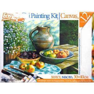 В наборе: деревянный подрамник с холстом (30х40 см), 3 кисти, набор масляных красок (12 цветов),