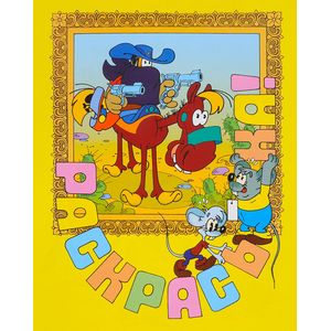 Вашему вниманию предлагается раскраска по мотивам мультфильма 'Раз ковбой, два ковбой', изготовленная из мелованной бумаги, чтобы ваш рисунок был еще ярче!