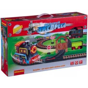 В комплекте: железная дорога (14 деталей), паровоз, вагон, аксессуары (10 штук).