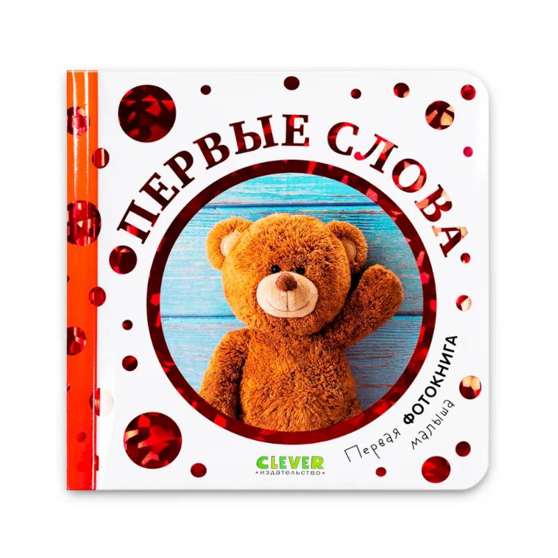 У книжки «Первые слова» компактный формат, удобный для маленьких ручек. Она легко уместится и в карман коляски, и в мамину сумку. Странички из прочного белого картона, круглые уголки, пухлая обложка, украшенная сверкающей фольгой: заниматься с такими фотокнигами — одно удовольствие!