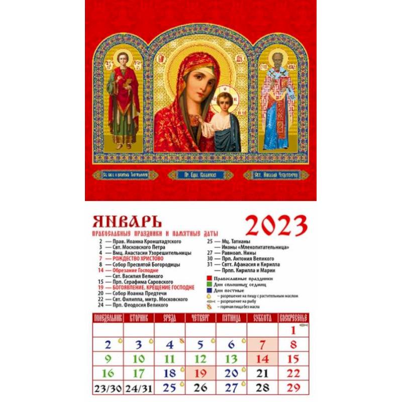 С указанием православных праздников, трапез и постов.