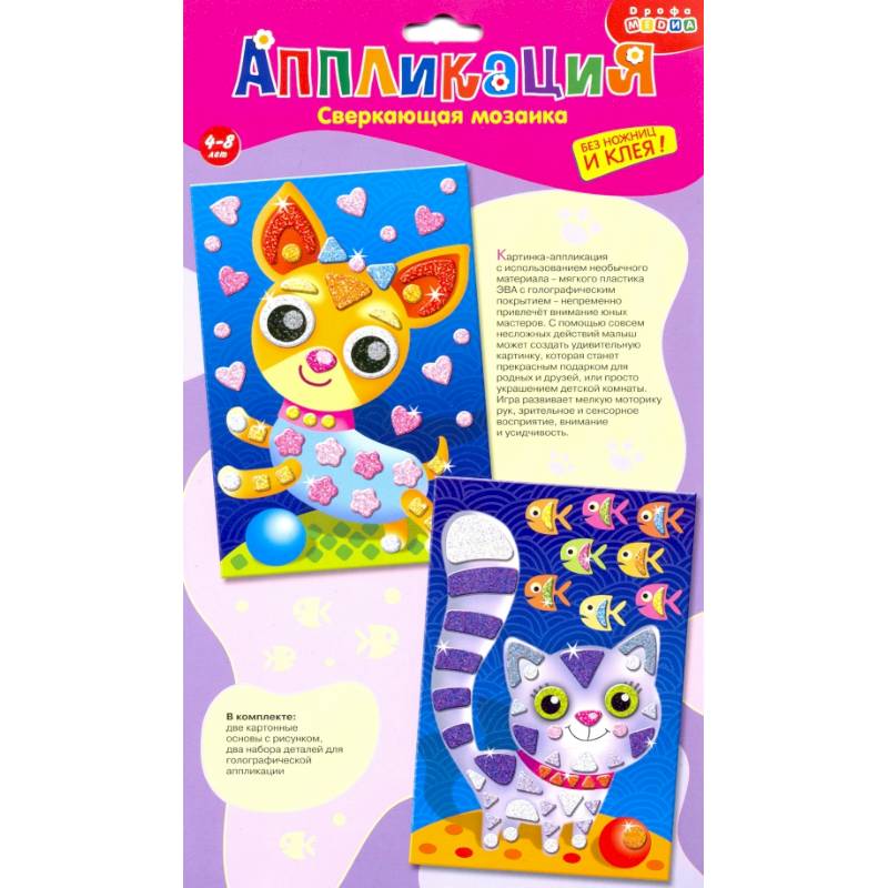 Малыш легко справится с работой, ведь ему не нужны ни клей, ни ножницы: объёмные детали легко приклеятся на картонную основу. Готовая картинка станет прекрасным подарком для родных и друзей, или просто украшением детской комнаты.