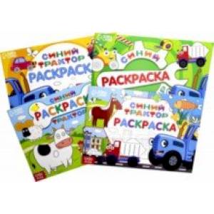 Набор представлен четырьмя книгами с различными рисунками и любимыми героями мультфильма «Синий трактор», поэтому малышу будут интересны творческие занятия