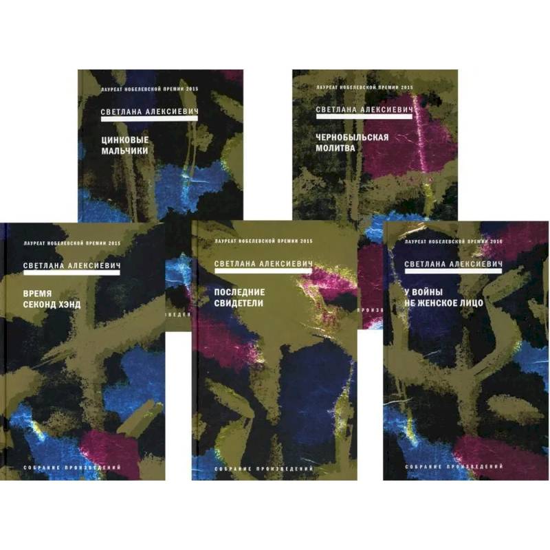 В комплект входят книги: «У войны не женское лицо», «Чернобыльская молитва», «Цинковые мальчики», «Время секонд-хэнд», «Последние свидетели: соло для детского голоса».