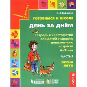 Тетради представляют собой пособия практического характера, дополняющие хрестоматию 'День за днём', и предназначены для детей старшего дошкольного возраста. Выполнение заданий тетрадей способствует общему развитию детей и их подготовке к обучению в школе: помогает формировать воссоздающее и творческое воображение, речевые умения, внимательность, образное и логическое мышление. Занятия проводятся с помощью педагогов или родителей.