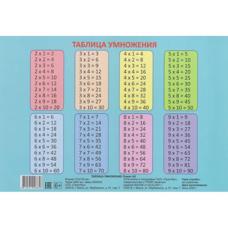 Плакат А5 Таблица умножения Единицы измерения 2025