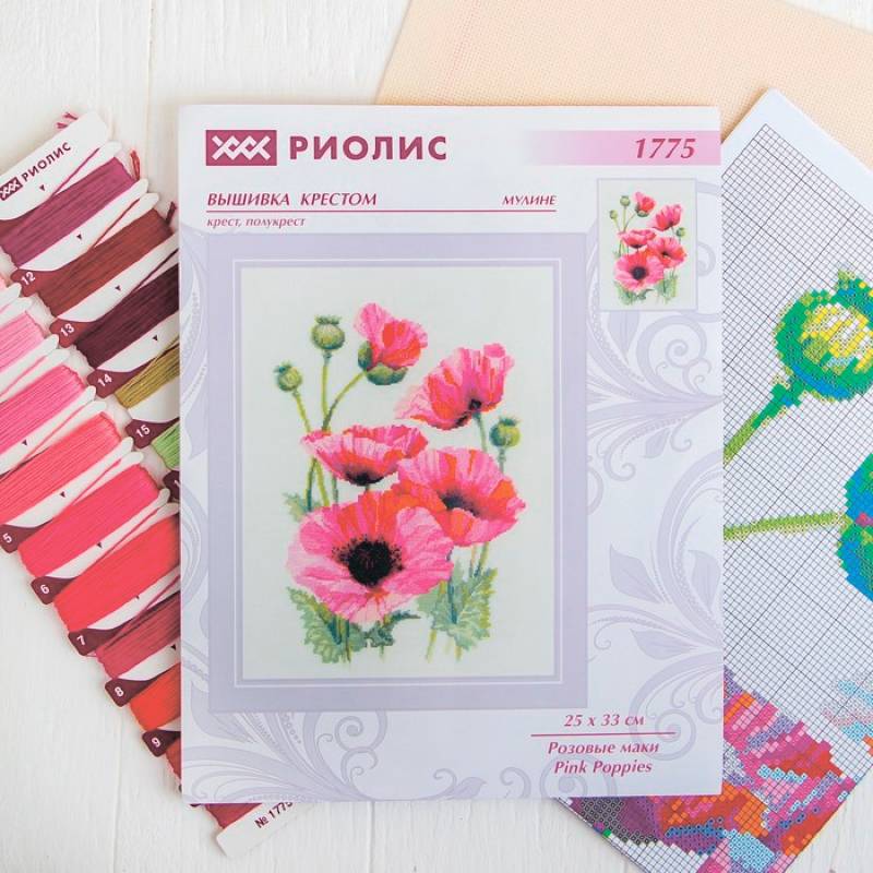 —Набор для вышивания крестиком 'Розовые маки', 25x33 см