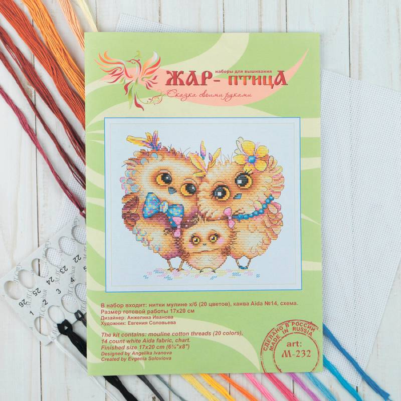 —Набор для вышивания 'Пернатая семья' 17x20 см