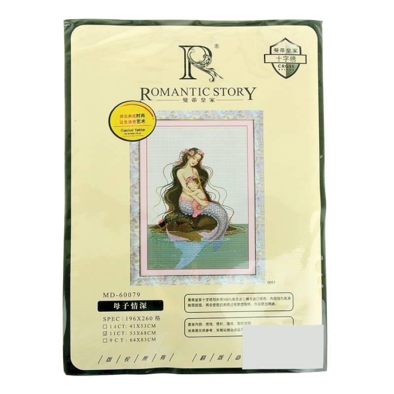 Набор для вышивания крестиком включает: иглу, канву с рисунком и схемой, мулине.