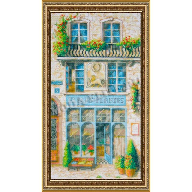 Рисунок на канве для вышивания крестом КР-47 «Цветочный магазин» 34,6*17,7 см.