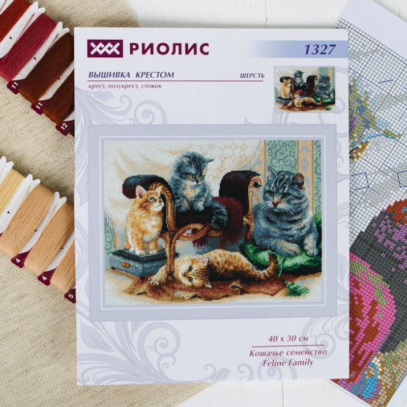 —Вышивка крестом 'Кошачье семейство', 40x30 см